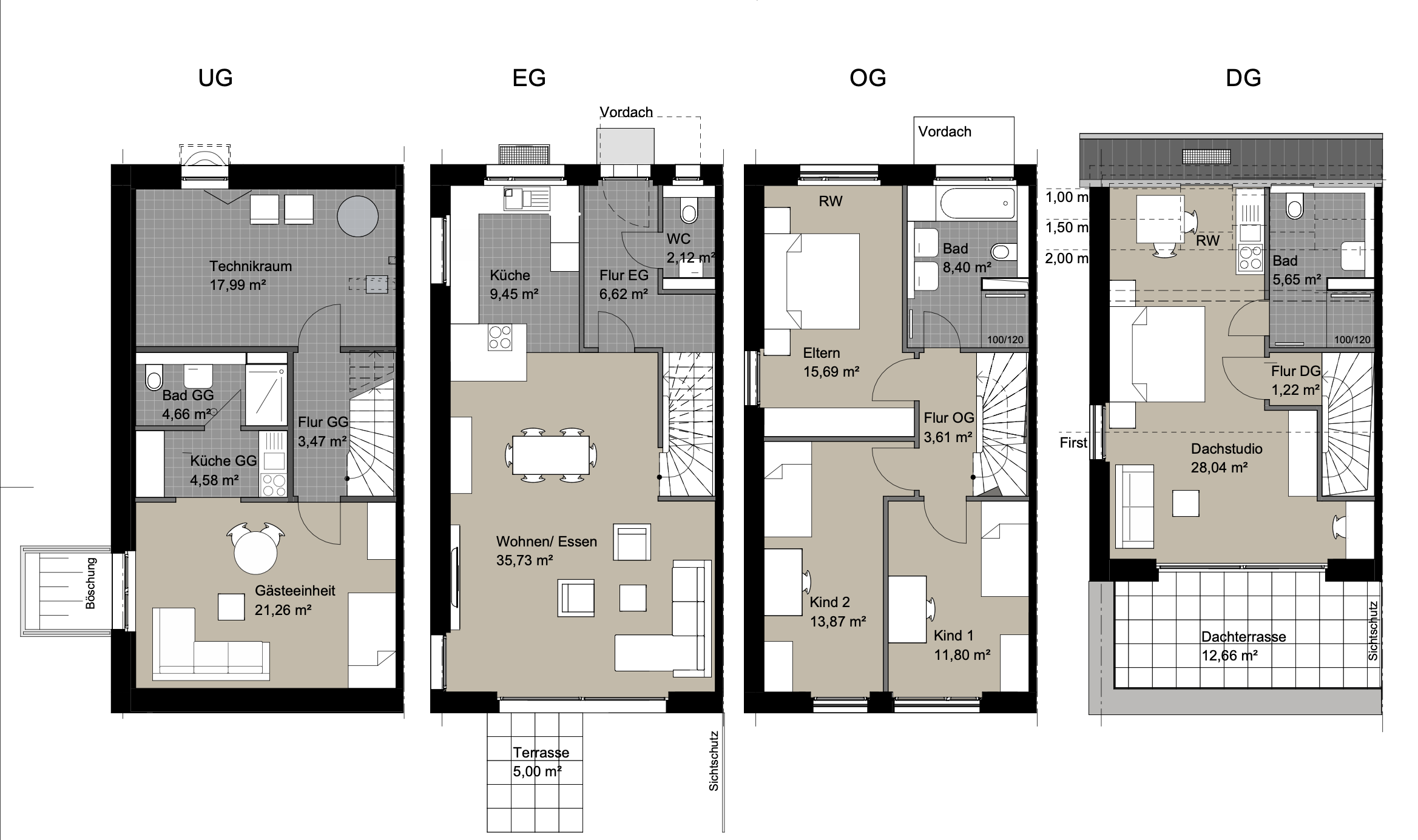 Untergeschoss gedämmt mit Gästeeinheit (Sonderwunsch)