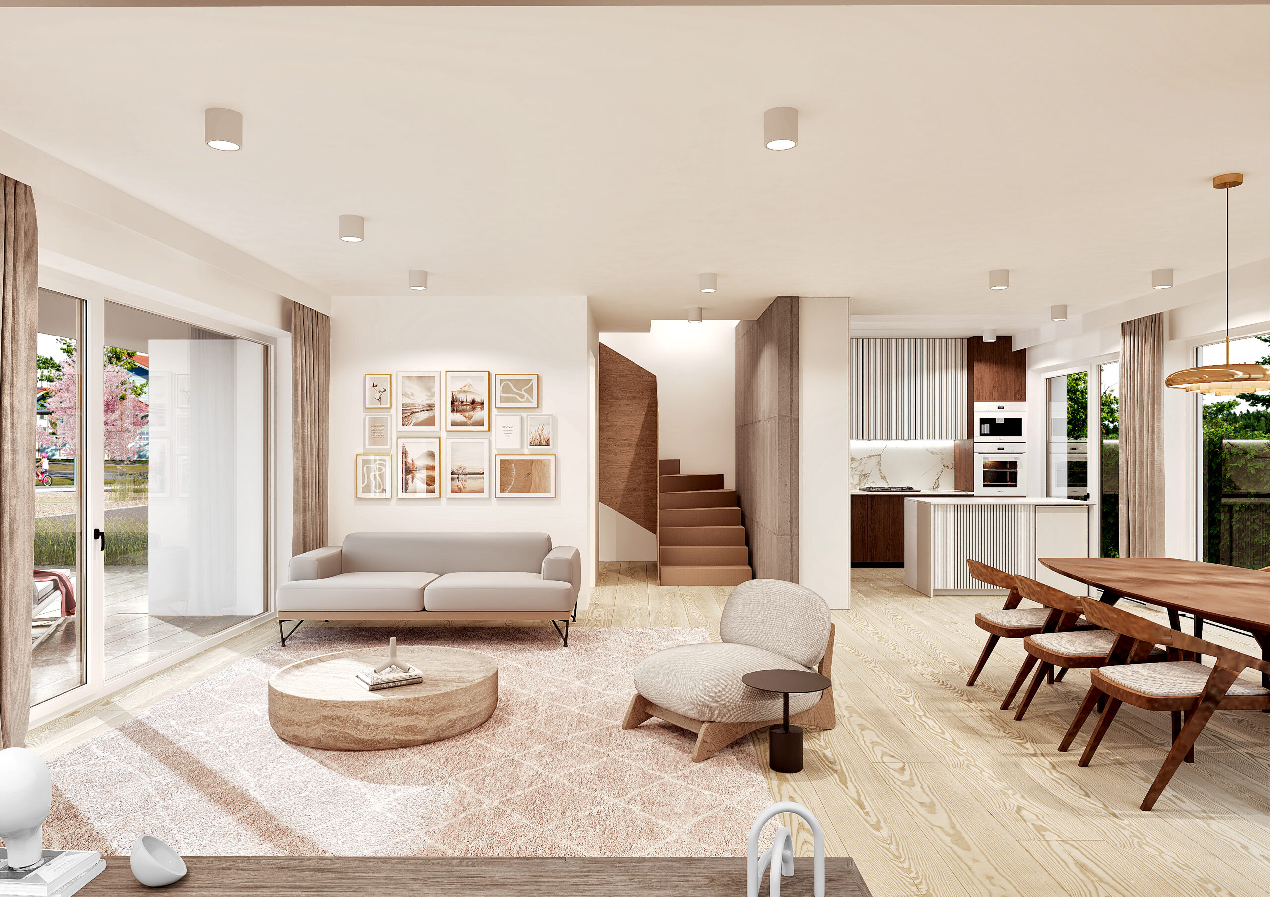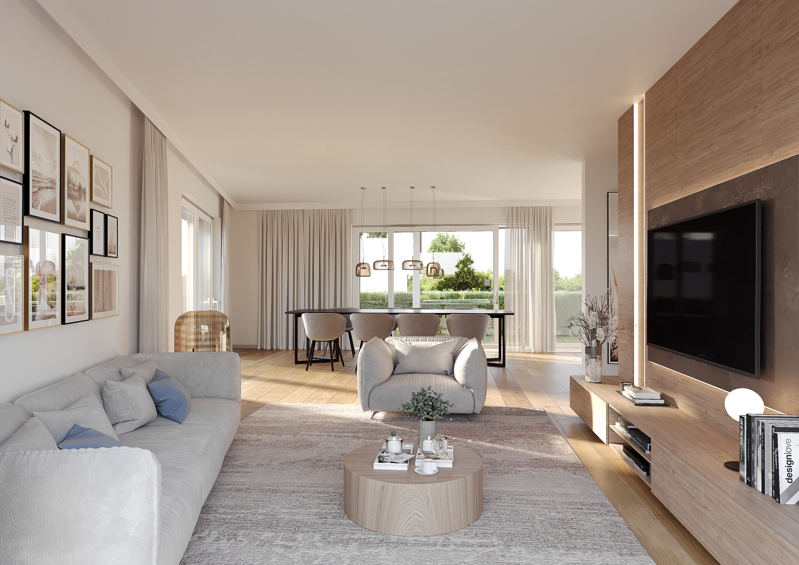 Jedes Haus erhält einen großzügigen Garten mit Süd-Ausrichtung. Der Grundriss ist dabei offen gestaltet und lässt mit 6 Zimmern bei einer Wohnfläche von ca. 186 m² – 200 m² keine Wünsche offen. Durch nicht tragende Innenwände sind die Grundrisse flexibel veränderbar und lassen sich so perfekt an Ihre Bedürfnisse anpassen.